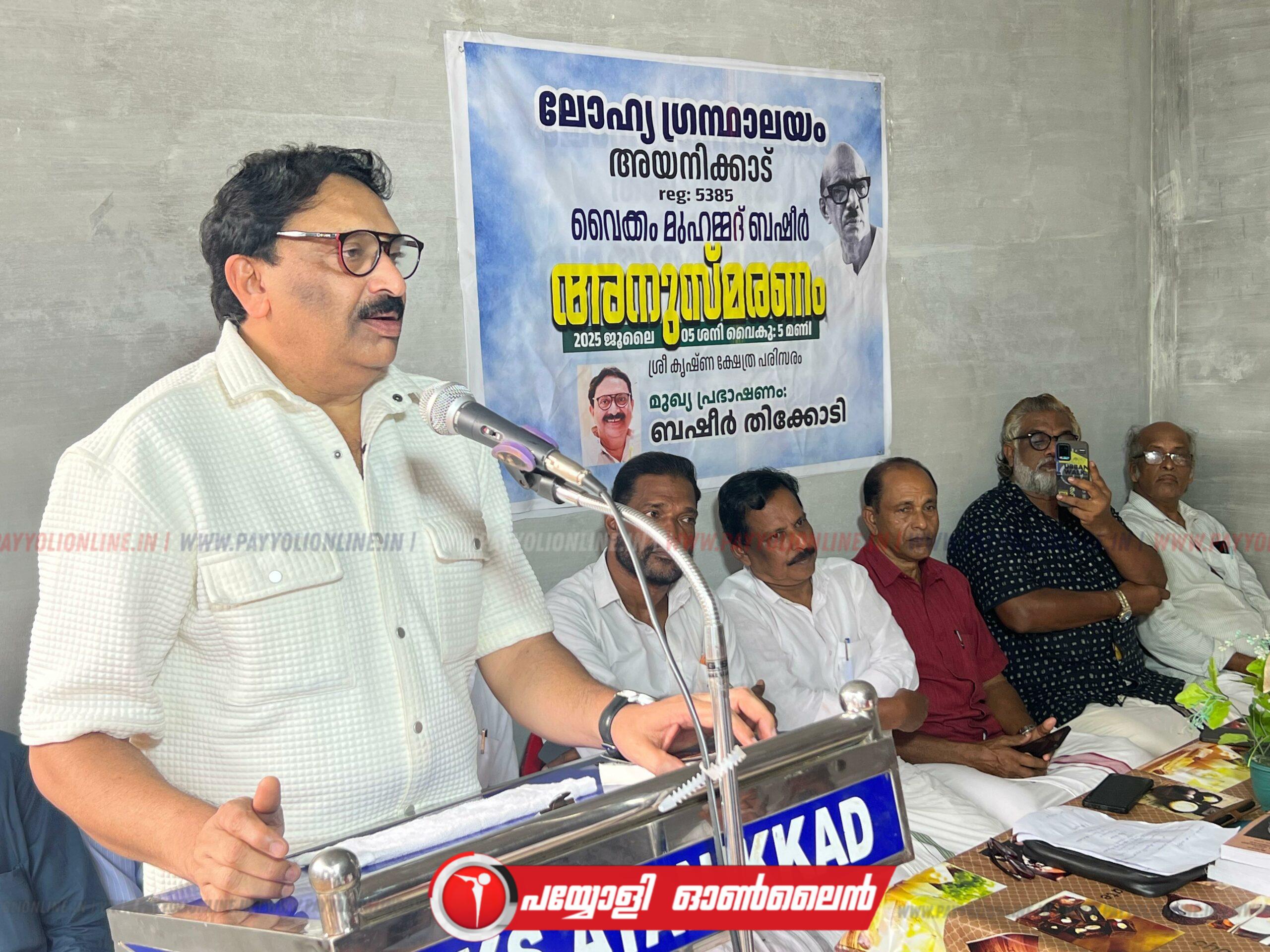 പയ്യോളി:  അയനിക്കാട് ലോഹ്യഗ്രന്ഥാലയത്തിൻ്റെ ആഭിമുഖ്യത്തിൽ വൈക്കം മുഹമ്മദ് ബഷീർ അനുസ്മരണവും വായനാ മത്സരവും സംഘടിപ്പിച്ചു. അനുസ്മരണം എഴുത്തുകാരൻ ബഷീർ തിക്കോടി ഉദ്ഘാടനം ചെയ്തു.